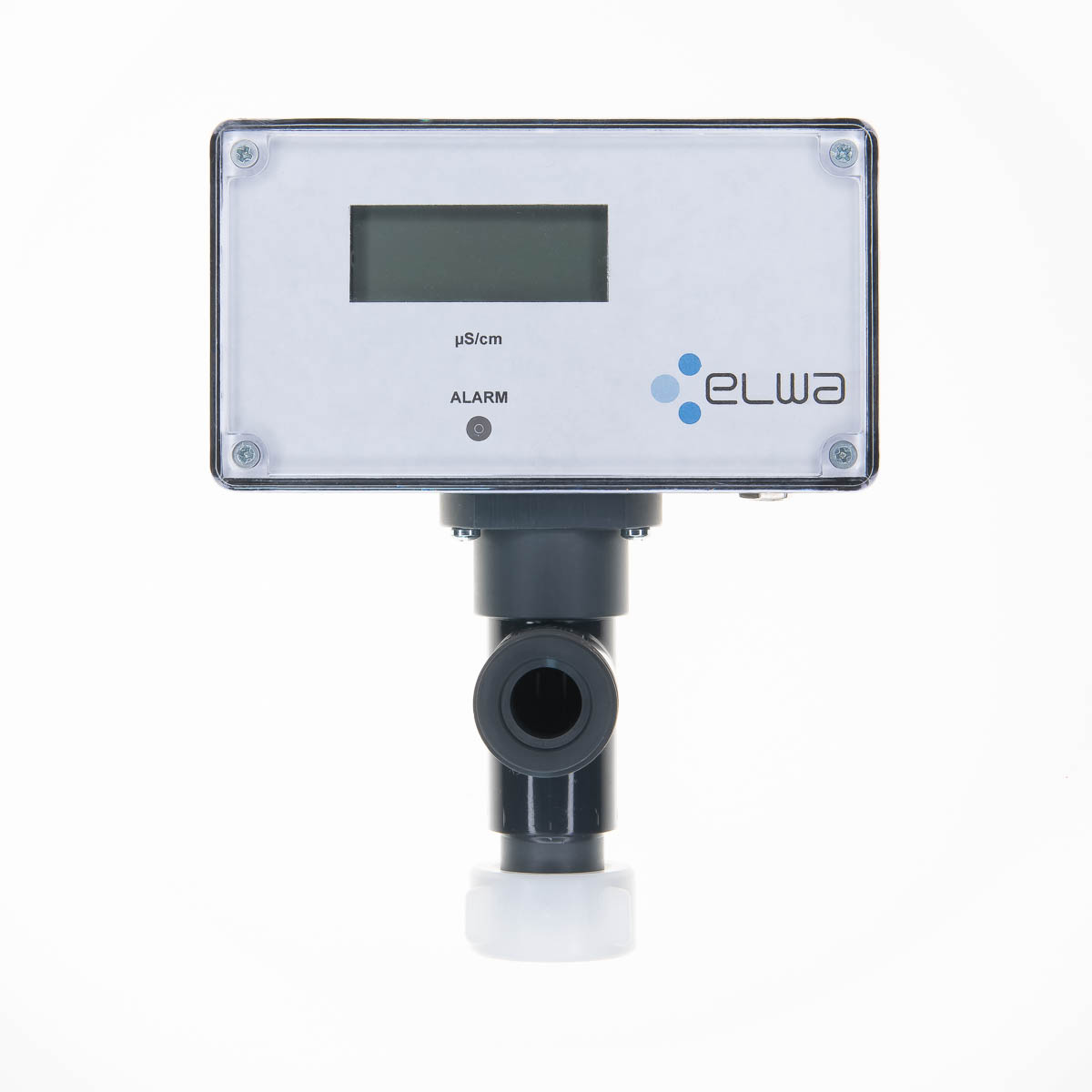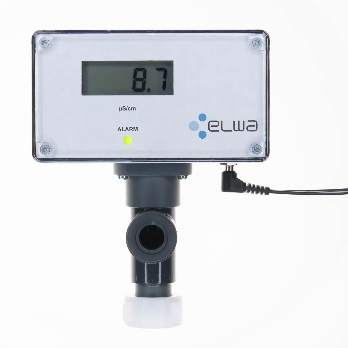 Measuring device with digital display for monitoring conductivity. A limit value can be set using the rotary switch. The current conductivity can be checked on the LCD display.