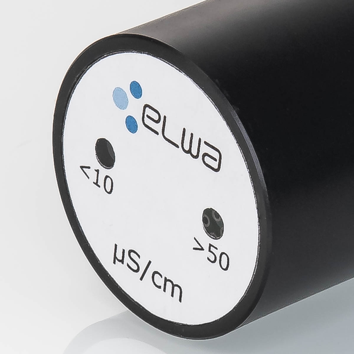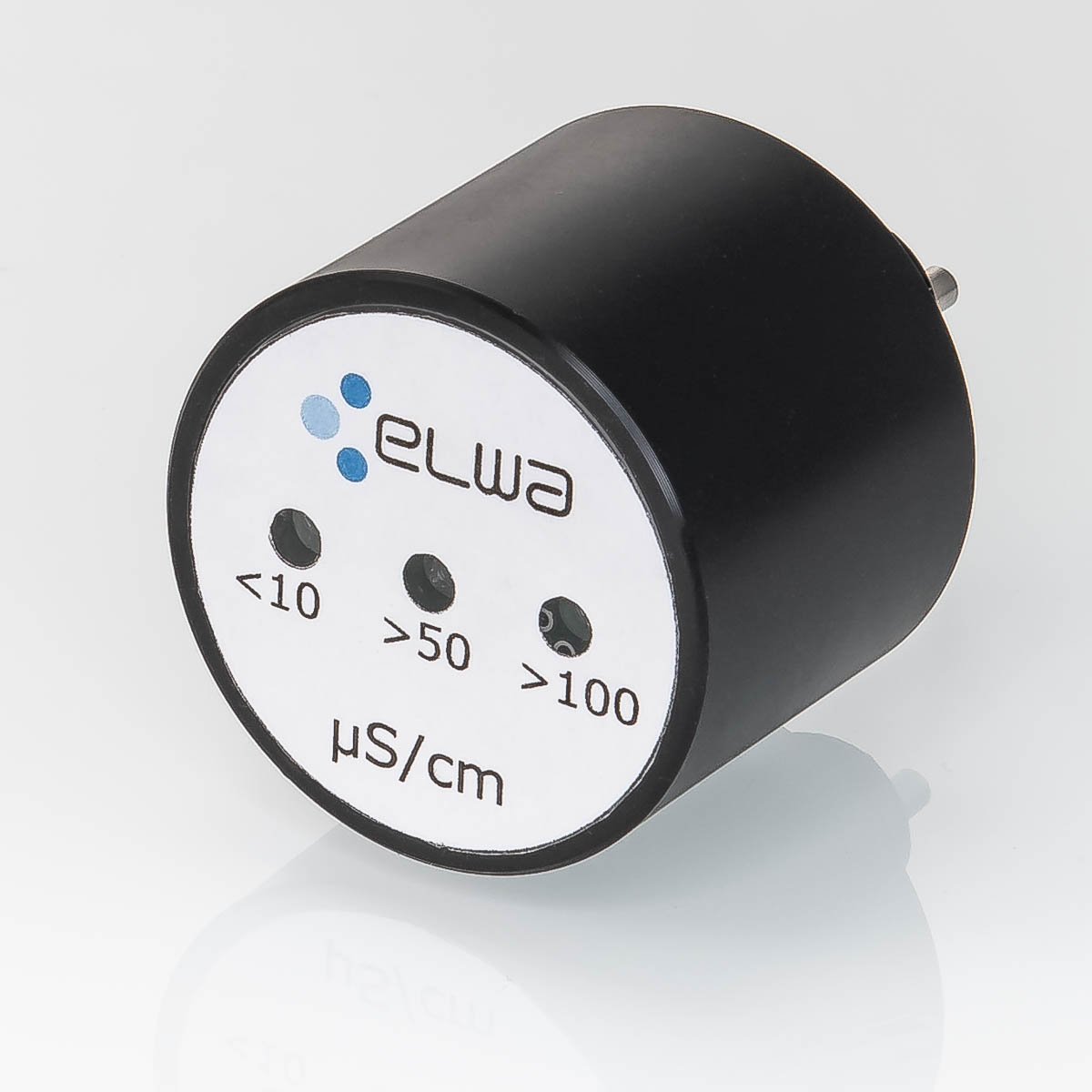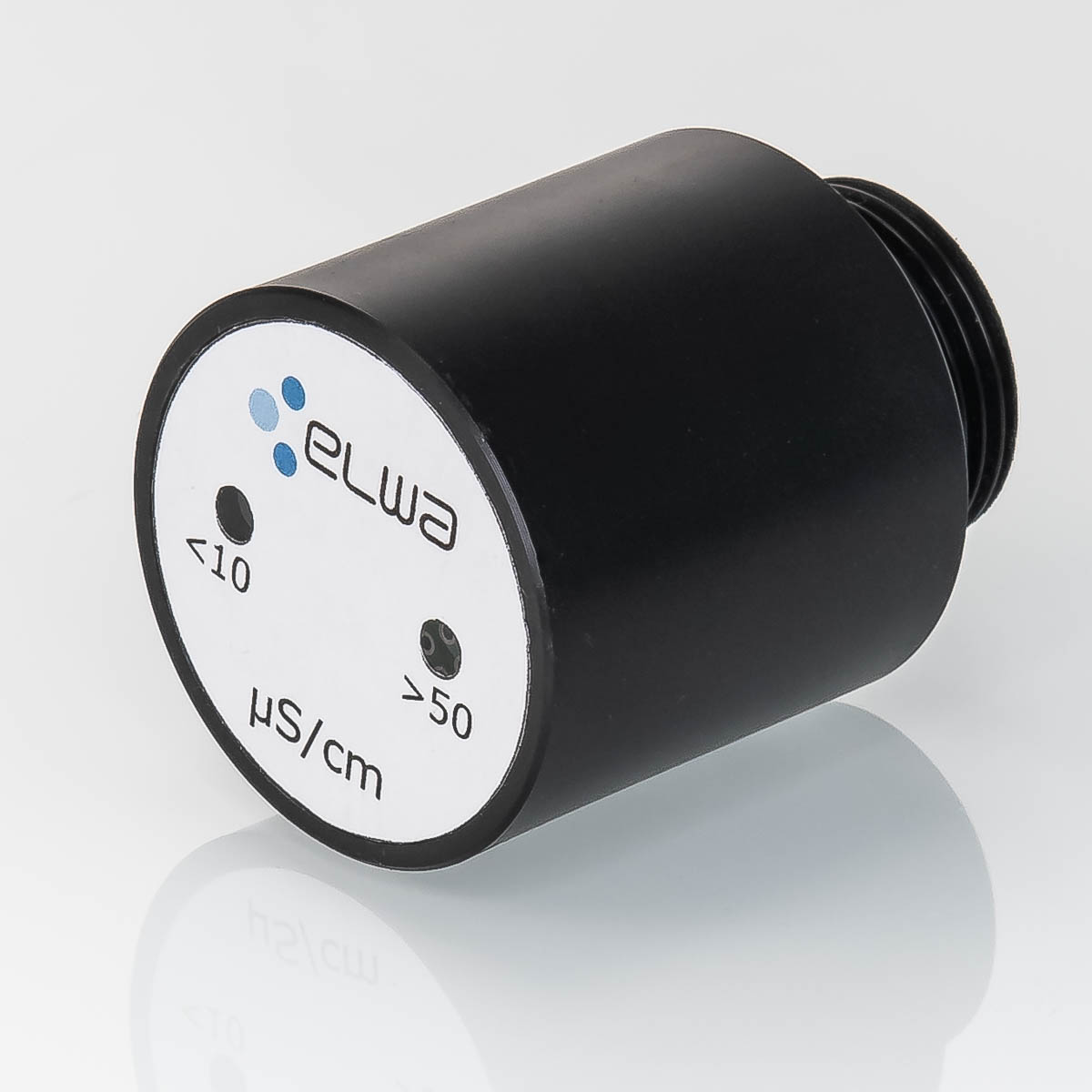 The Micro-LFG is a conductivity meter for the permanent capacity monitoring of an ion exchange cartridge. It is battery-operated and equipped with an integrated measuring cell, making it ready for immediate use. The conductivity range of the solution to be measured can be displayed using the LEDs. Various measuring ranges are possible. It is indicated whether the aqueous solution is within the desired norm range or if a cartridge or resin change is necessary.