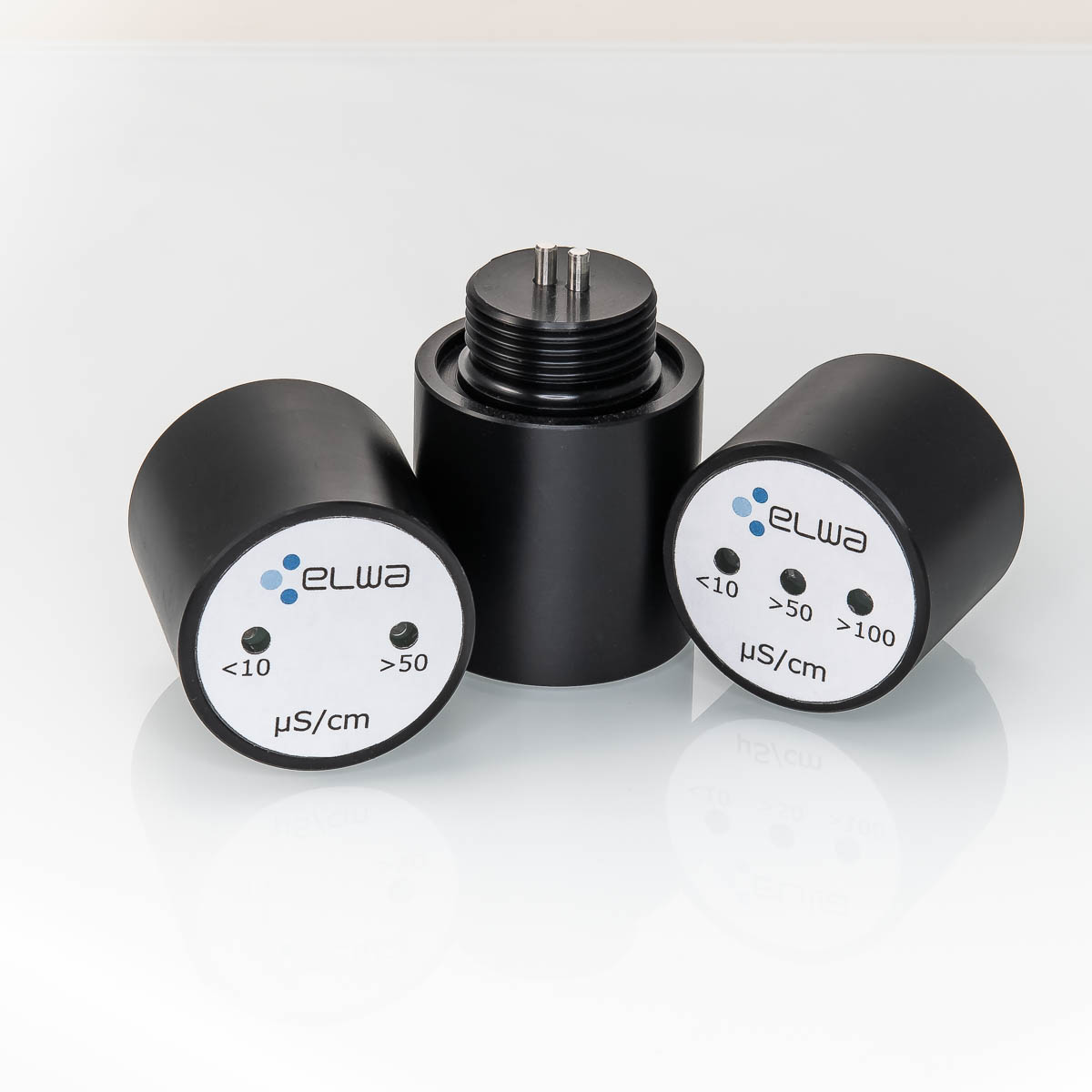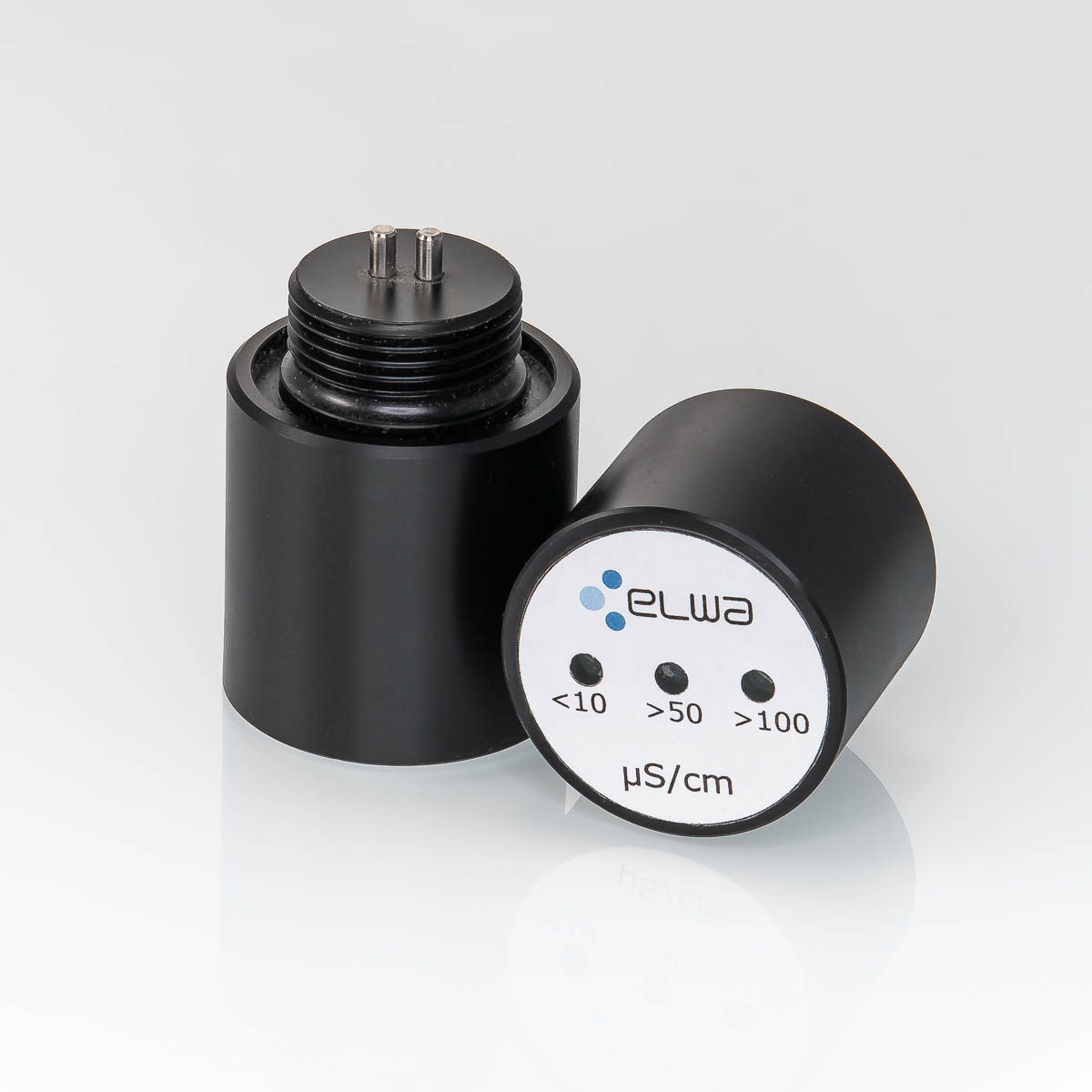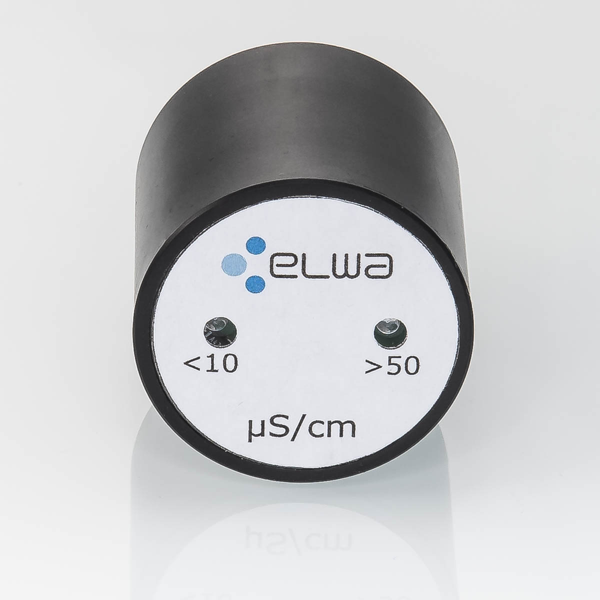 The Micro-LFG is a conductivity meter for the permanent capacity monitoring of an ion exchange cartridge. It is battery-operated and equipped with an integrated measuring cell, making it ready for immediate use. The conductivity range of the solution to be measured can be displayed using the LEDs. Various measuring ranges are possible. It is indicated whether the aqueous solution is within the desired norm range or if a cartridge or resin change is necessary.